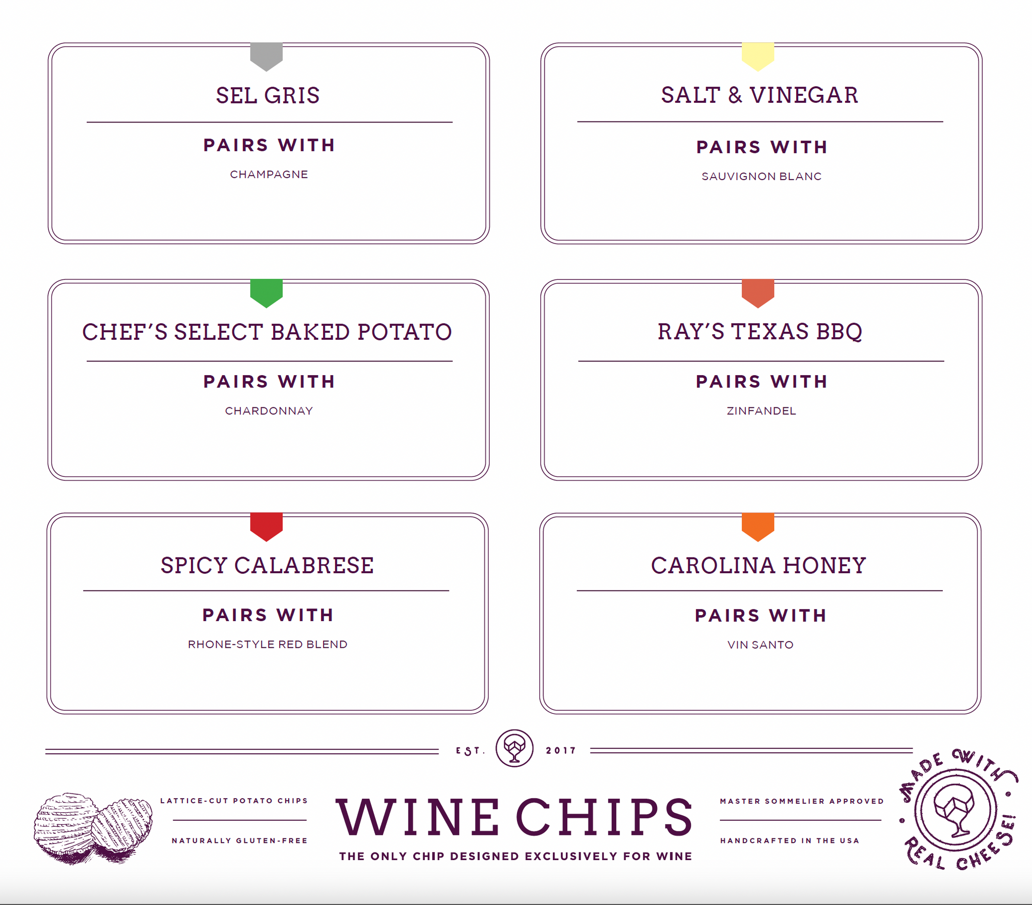 We worked closely with Ray and our in-house Batch Masters to both identify existing Wine Chips flavors that would work well with his seminar and also to create new flavors that would hone in on specific seasonings to help focus the wine pairing experience.